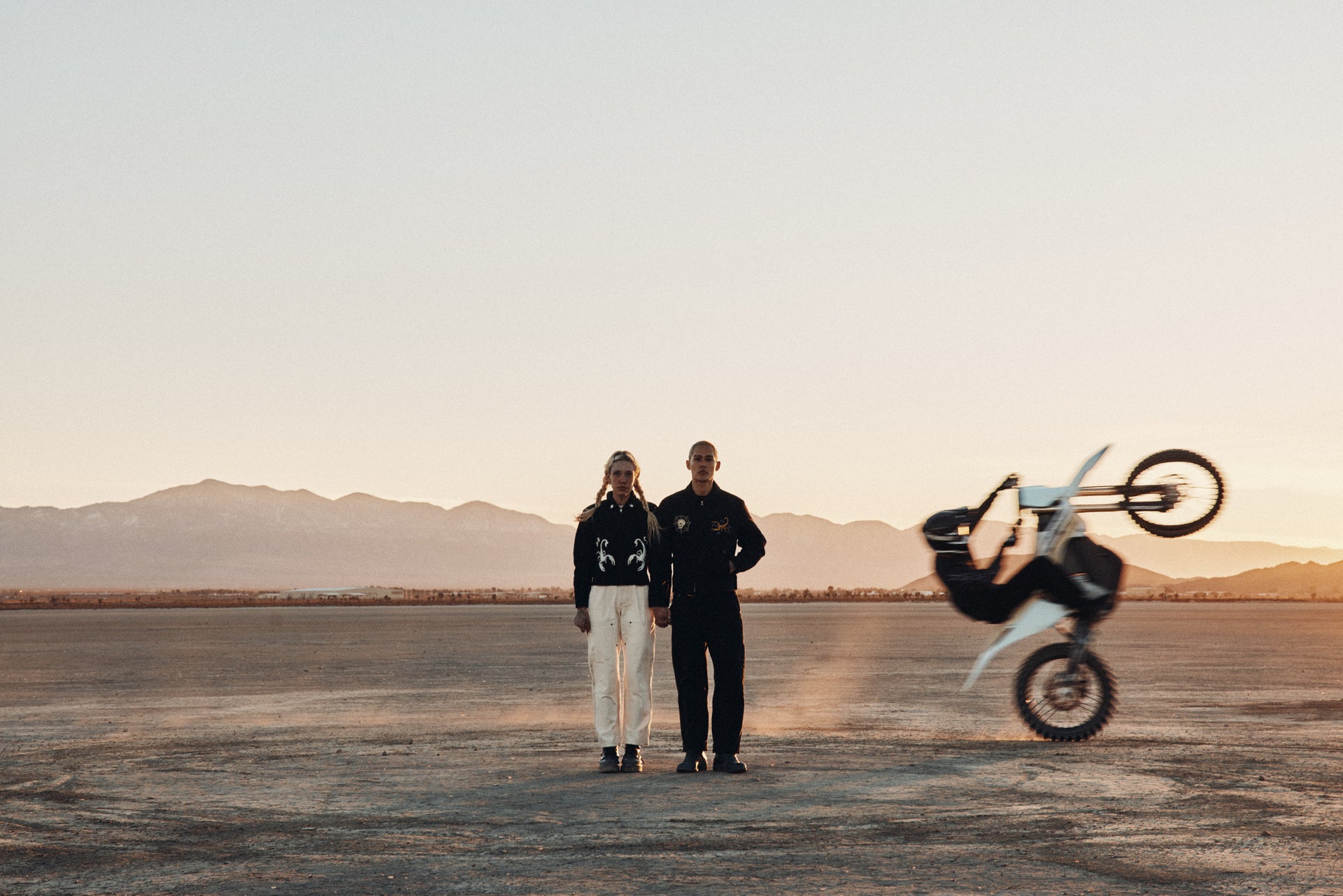 We found balance in the process- taking a pre-worn and already chaotic pair of trousers and hand-painting new details and art onto them. It was fun to apply our graphic DNA onto a piece that wouldn’t typically find it. This sparked the inspiration for the entire collection & the campaign shoot- which was on the dry riverbeds of El Mirage.