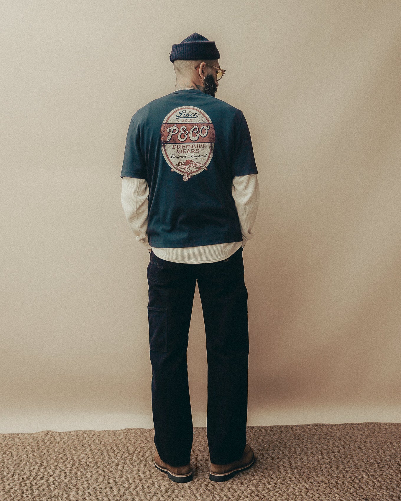 The Premium Wears T-shirt in heavy-washed black is a men’s relaxed-fit tee made from mid-weight organic cotton. It features screen-printed graphics with a distressed look inspired by vintage signage. Our organic cotton is grown without pesticides or synthetic chemicals. On average, 62% less energy and 91% less water is used—producing 62% less CO2 than standard cotton.