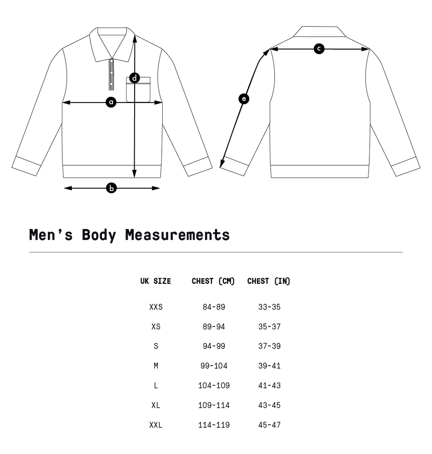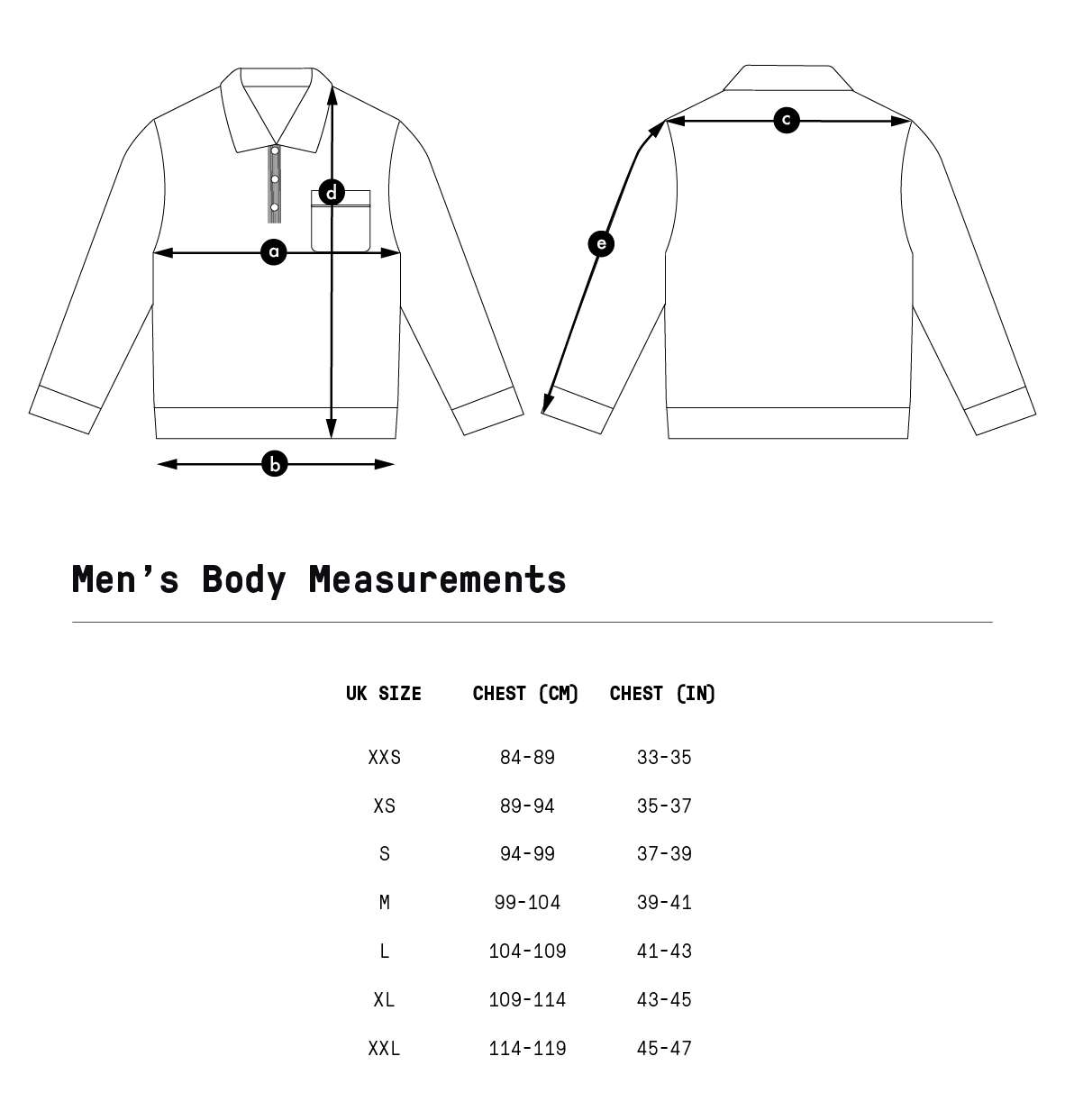 SizeChest (a)Hem (b)Shoulder to Shoulder (c)Length (d)Sleeve Length (e)