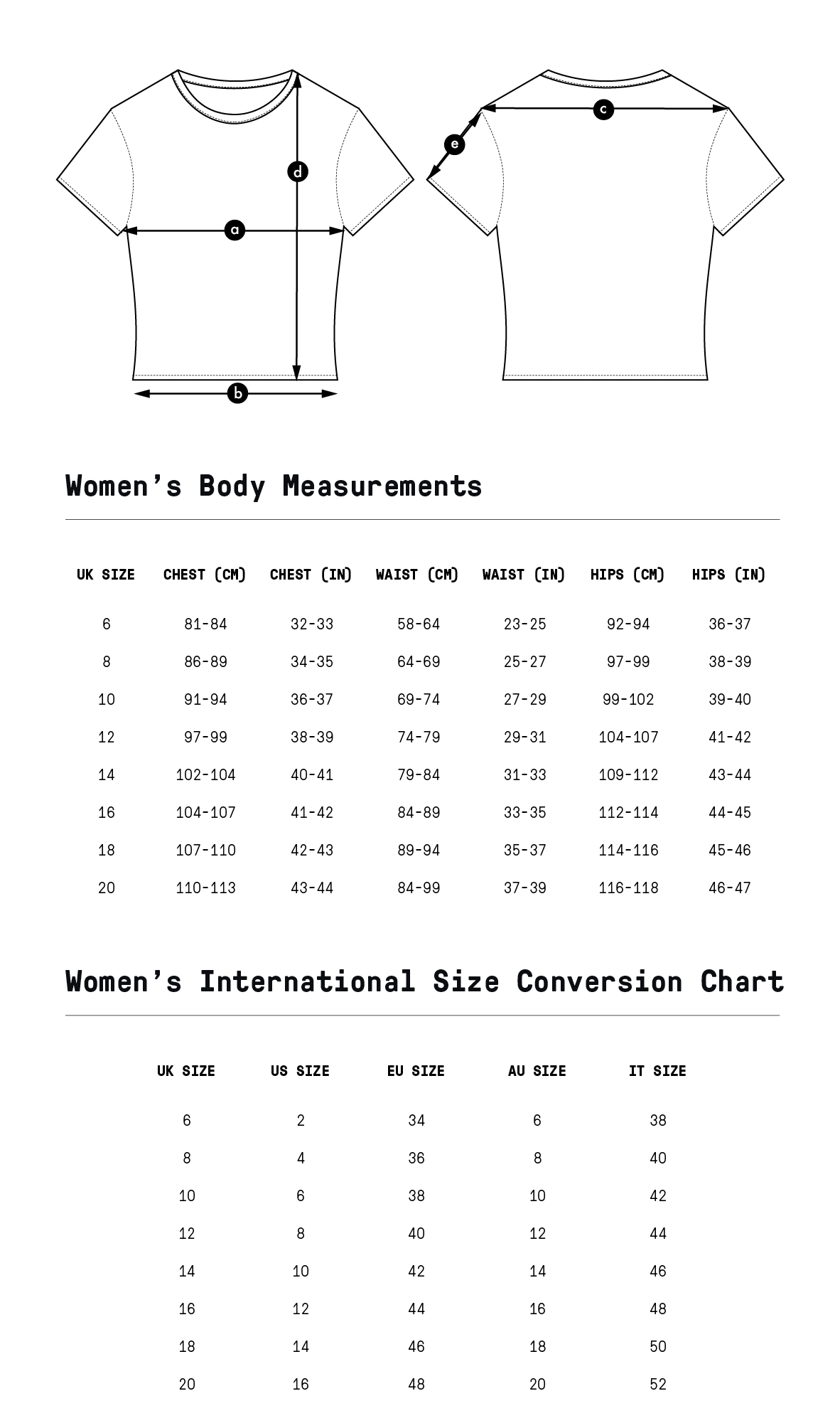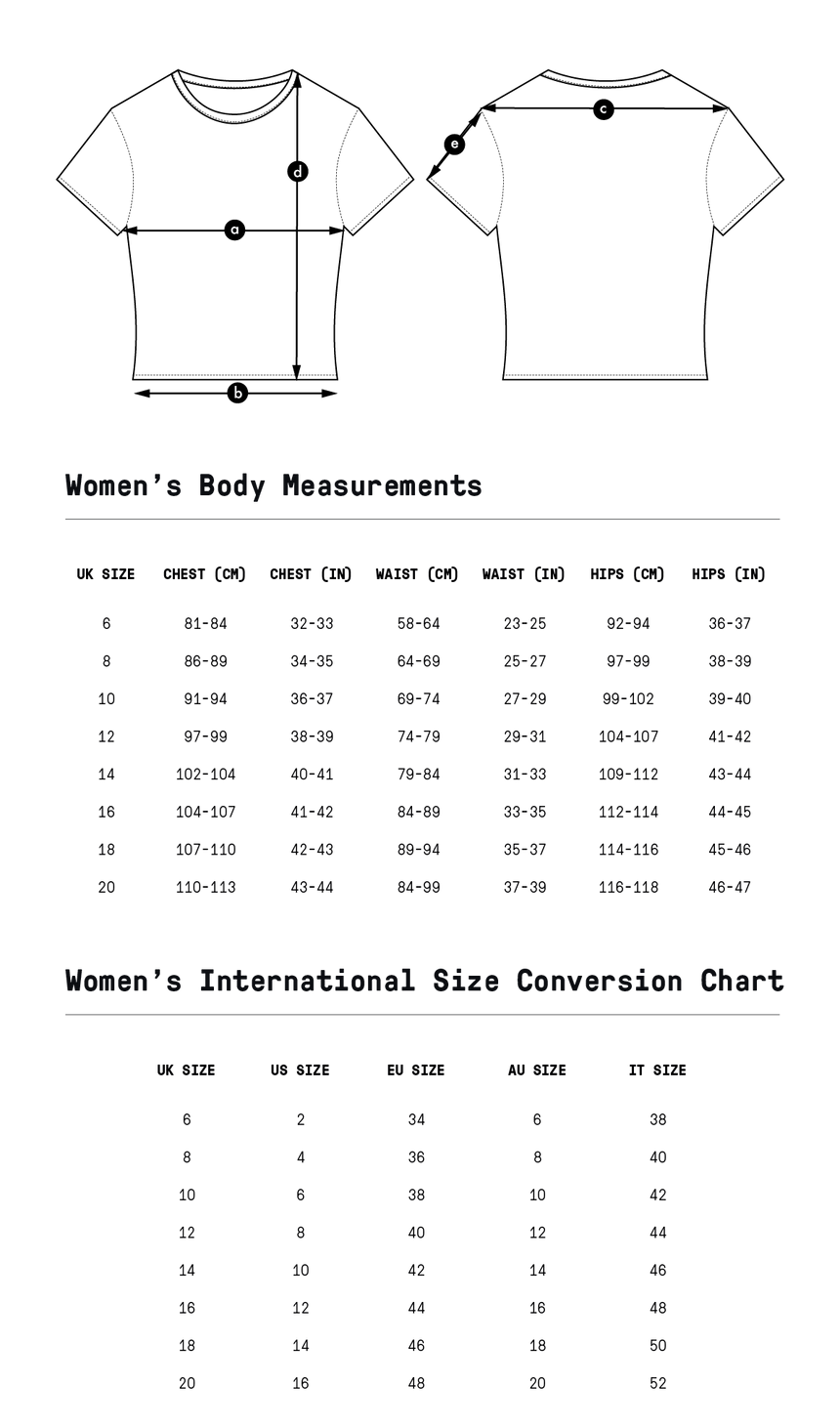 SizeChest (a)Hem (b)Shoulder to Shoulder (c)Length (d)Sleeve Length (e)