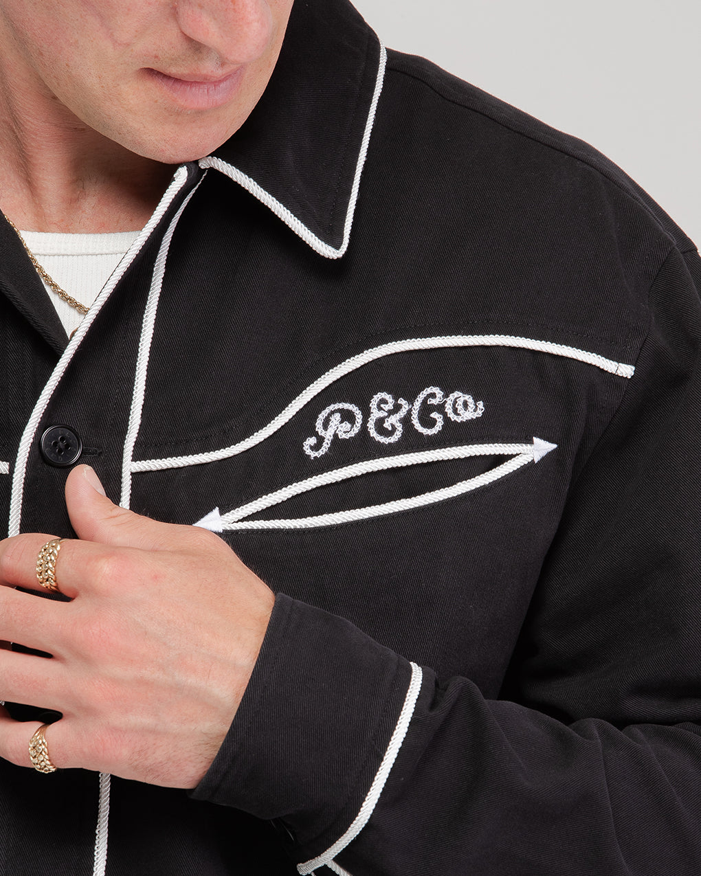 Our Willow Western Shirt in washed black is a regular-fit shirt with western-inspired detailing. Made from a soft yet structured cotton-tencel blend, it offers a comfortable fit with a premium feel. Refined contrast piping and sharp chest pocket angles are a nod to classic rodeo styling while keeping a clean and contemporary look.
