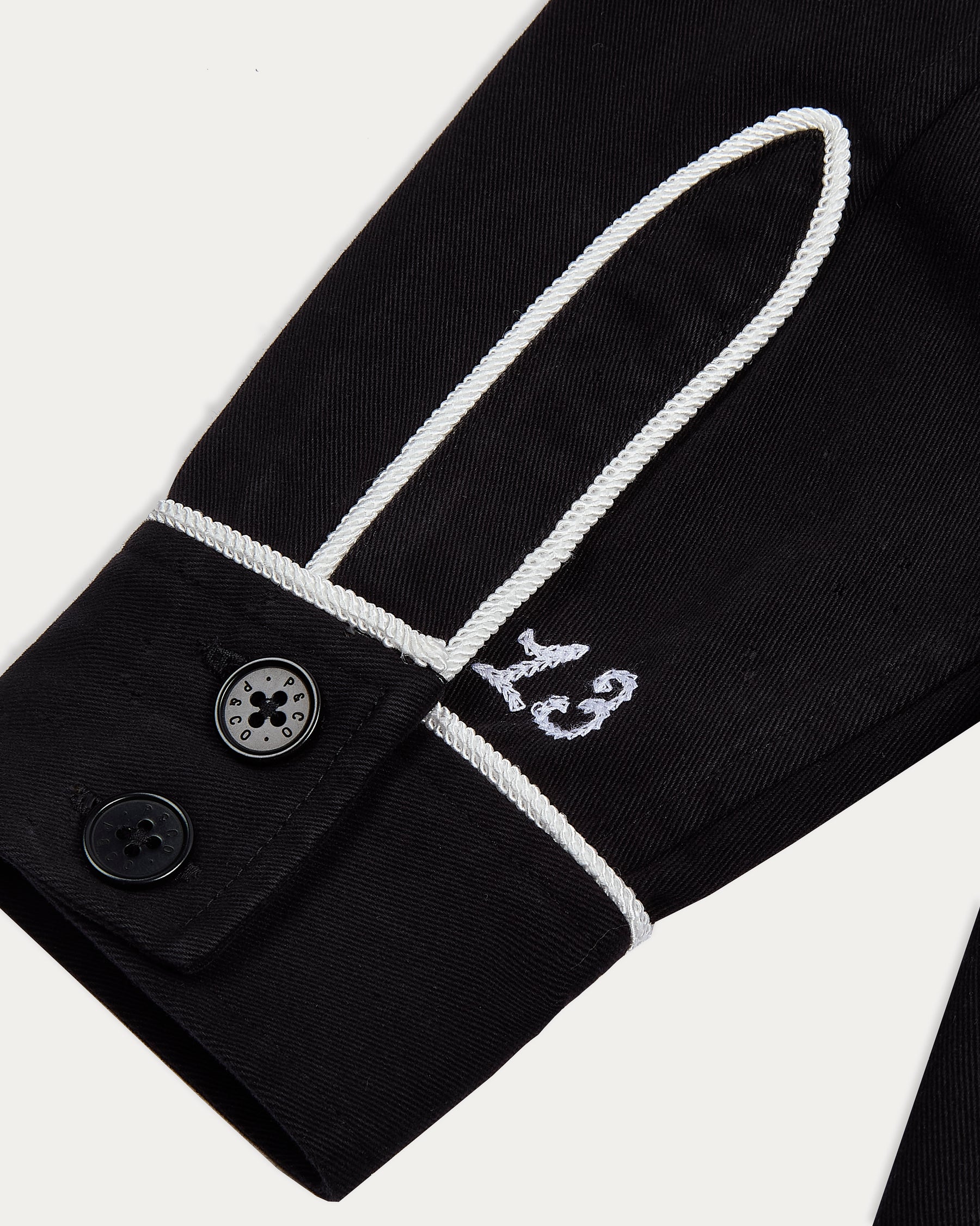 - Angled welt chest pockets