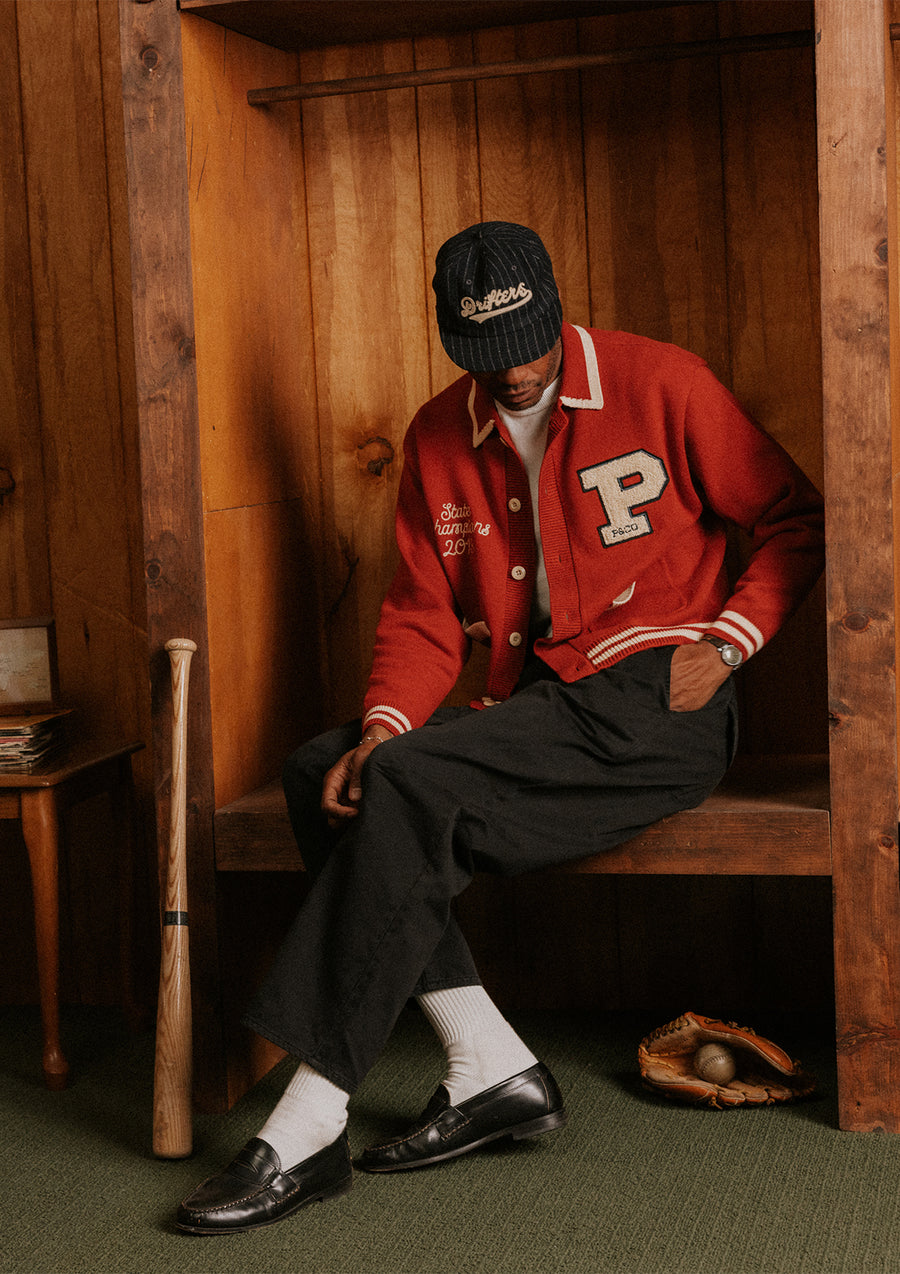 Varsity Knitted Cardigan - Brick Red